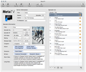 With MetaTV you can add very easily information about TV shows and cover arts to your video files (.mp4, .m4v). Simply drop your video files on the episode list of MetaTV, search for your TV show, select the right season and press copy. MetaTV loads all information about your episodes like air date, actors and overview together with cover images from the TVDB. With one further click you can add all the information to your video files. Import your files to iTunes and experience the professional look of your TV shows made by MetaTV.